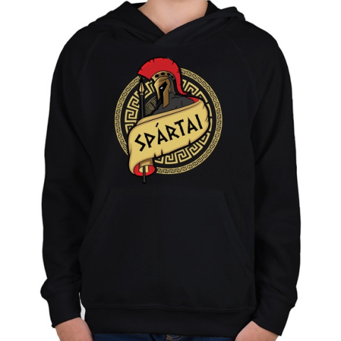 1 kép PRINTFASHION Spártai - Gyerek kapucnis pulóver - Fekete