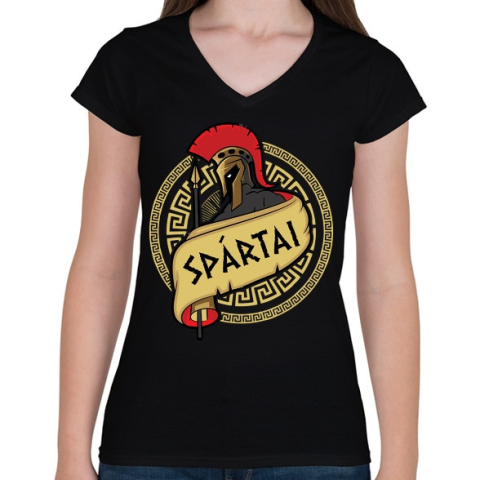 1 kép PRINTFASHION Spártai - Női V-nyakú póló - Fekete