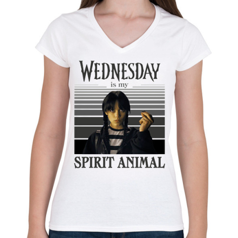 1 kép PRINTFASHION Spirit animal - Wednesday - Női V-nyakú póló - Fehér
