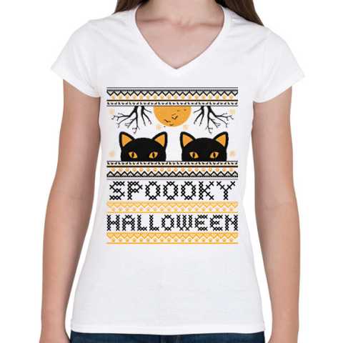1 kép PRINTFASHION SPOOKY HALLOWEEN - Női V-nyakú póló - Fehér