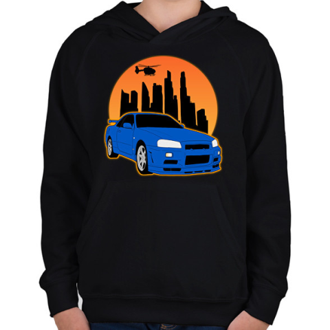 1 kép PRINTFASHION Sport autó - Gyerek kapucnis pulóver - Fekete
