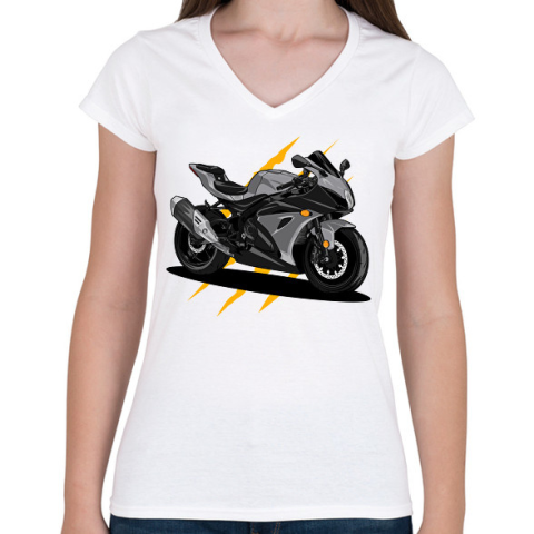 1 kép PRINTFASHION Sport motor - Női V-nyakú póló - Fehér
