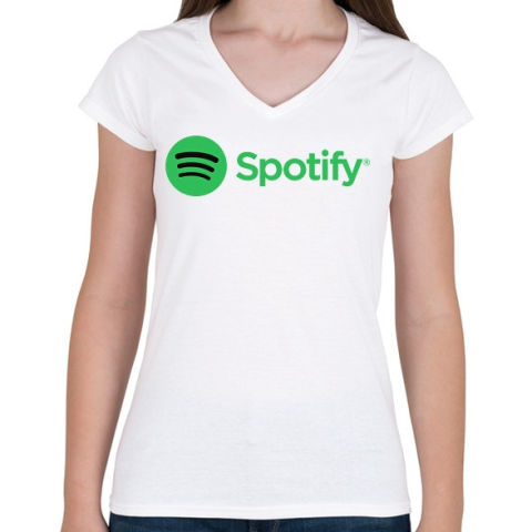 1 kép PRINTFASHION Spotify - Női V-nyakú póló - Fehér