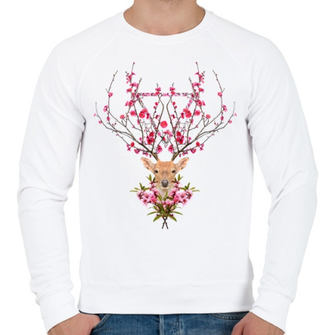 1 kép PRINTFASHION Spring deer - Férfi pulóver - Fehér