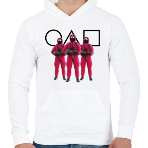 1 kép PRINTFASHION Squid game 3 soldiers with black symbols - Férfi kapucnis pulóver - Fehér