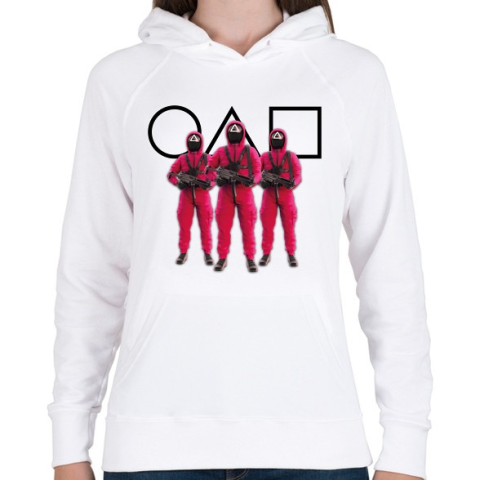 1 kép PRINTFASHION Squid game 3 soldiers with black symbols - Női kapucnis pulóver - Fehér