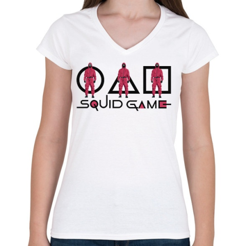 1 kép PRINTFASHION Squid Game - Női V-nyakú póló - Fehér