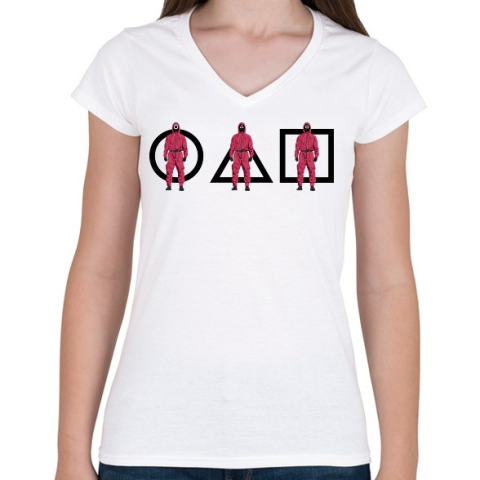 PRINTFASHION Squid Game - Női V-nyakú póló - Fehér