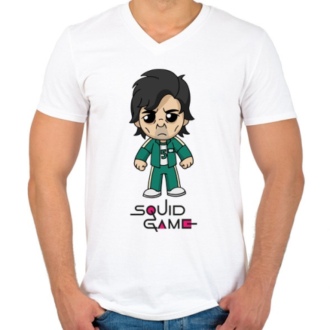 1 kép PRINTFASHION Squid Game - Player 456 Seong Gi-hun - Férfi V-nyakú póló - Fehér
