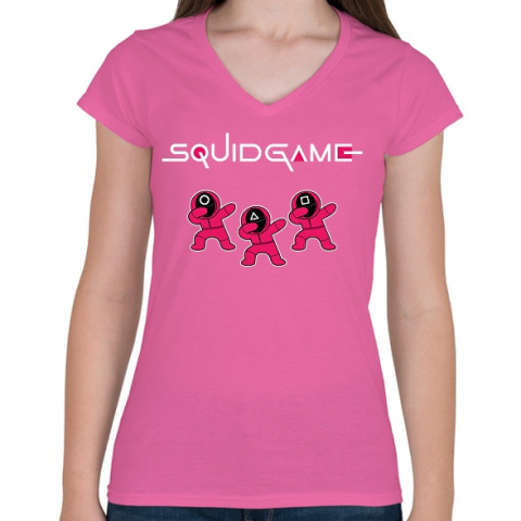 1 kép PRINTFASHION Squid game trio fehér - Női V-nyakú póló - Rózsaszín
