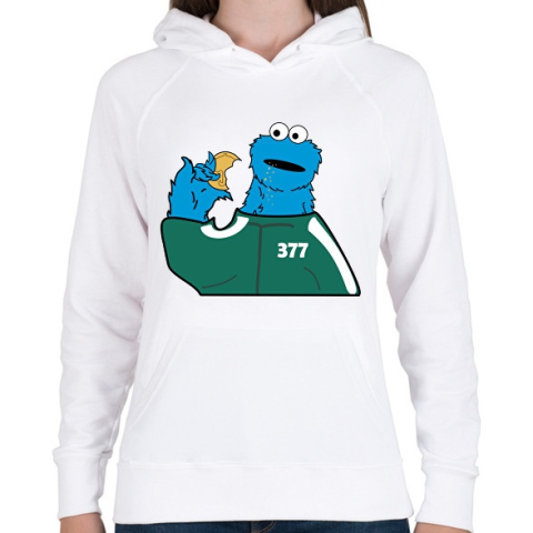 1 kép PRINTFASHION Squid Game vs. Sütiszörny - Női kapucnis pulóver - Fehér