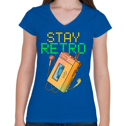 1 kép PRINTFASHION Stay retro walkman - Női V-nyakú póló - Királykék