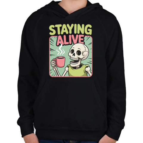 1 kép PRINTFASHION Staying alive - Gyerek kapucnis pulóver - Fekete