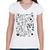 Egyedi mintás női vnyakú póló, pamut anyagból. Tökéletes ajándék nőknek, akik szeretik az egyedi mintákat az alábbi témákban: