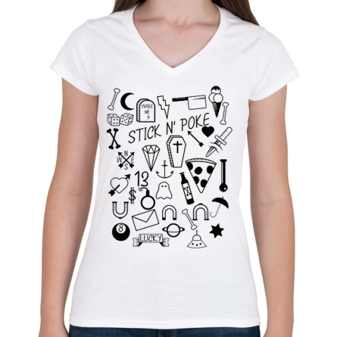 1 kép PRINTFASHION Stick nd poke - Női V-nyakú póló - Fehér