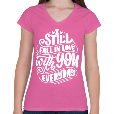 1 kép PRINTFASHION Still fall in love - Női V-nyakú póló - Rózsaszín