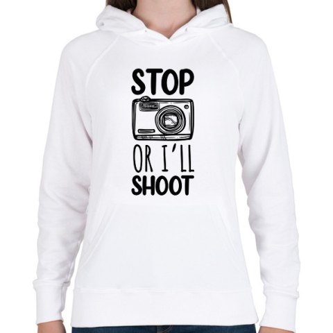 1 kép PRINTFASHION Stop or I'll shoot - Női kapucnis pulóver - Fehér