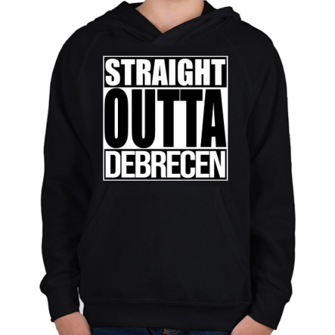 1 kép PRINTFASHION Straight Outta Debrecen - Gyerek kapucnis pulóver - Fekete
