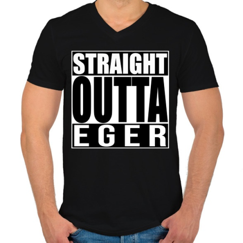 1 kép PRINTFASHION Straight Outta Eger - Férfi V-nyakú póló - Fekete