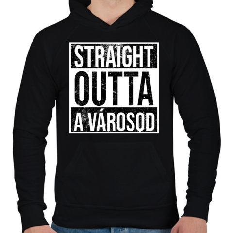 1 kép PRINTFASHION STRAIGHT OUTTA VÁROSOD - Férfi kapucnis pulóver - Fekete