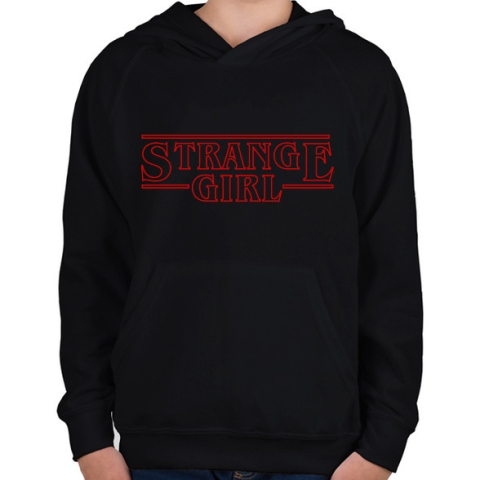1 kép PRINTFASHION Stranger Girl - Gyerek kapucnis pulóver - Fekete