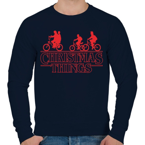 1 kép PRINTFASHION Stranger things christmas piros - Férfi pulóver - Sötétkék