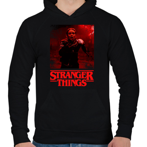 1 kép PRINTFASHION stranger things - Férfi kapucnis pulóver - Fekete