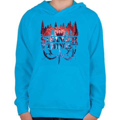 1 kép PRINTFASHION Stranger Things - Gyerek kapucnis pulóver - Azúrkék