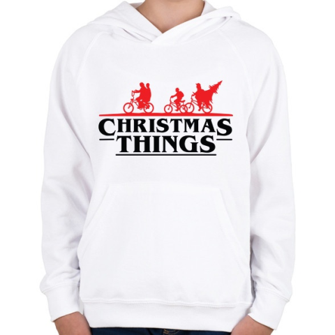 1 kép PRINTFASHION Stranger Things Karácsony fekete - Gyerek kapucnis pulóver - Fehér