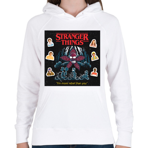 1 kép PRINTFASHION Stranger Things - Női kapucnis pulóver - Fehér