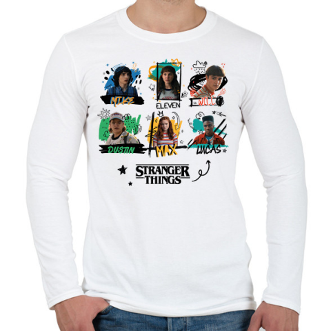1 kép PRINTFASHION Stranger Things szereplők - Férfi hosszú ujjú póló - Fehér