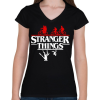 1 kép PRINTFASHION stranger things upside down - Női V-nyakú póló - Fekete
