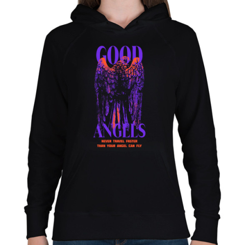 1 kép PRINTFASHION Streetwear angels - Női kapucnis pulóver - Fekete