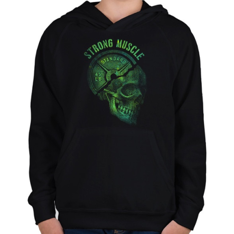1 kép PRINTFASHION Strong Muscle - Gyerek kapucnis pulóver - Fekete