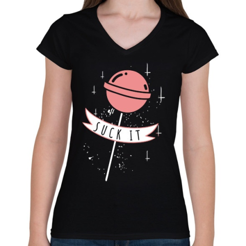 1 kép PRINTFASHION Suck It - Női V-nyakú póló - Fekete