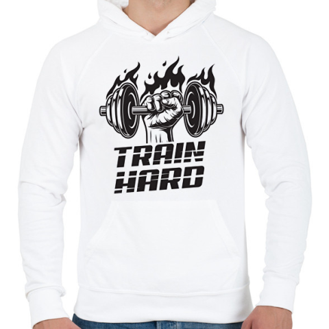 1 kép PRINTFASHION Súlyzós edzés - Férfi kapucnis pulóver - Fehér