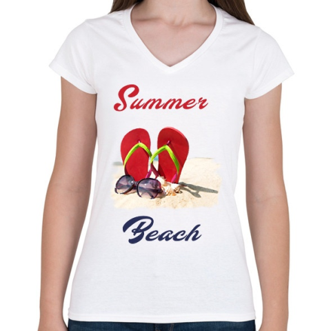 1 kép PRINTFASHION summer beach - Női V-nyakú póló - Fehér