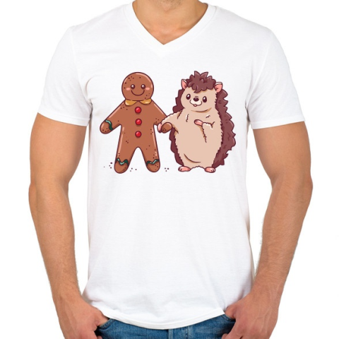 1 kép PRINTFASHION Süni és mézeskalács - Férfi V-nyakú póló - Fehér