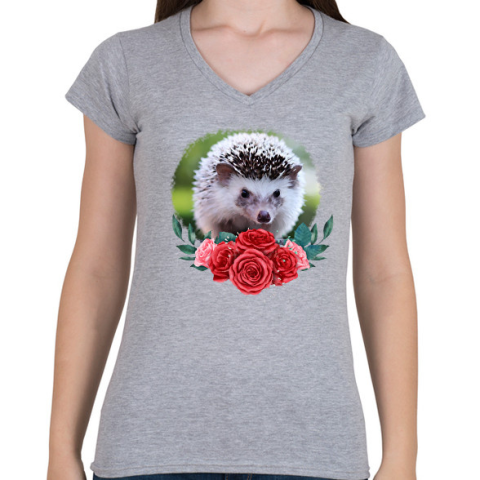 1 kép PRINTFASHION Süni virággal - Női V-nyakú póló - Sport szürke