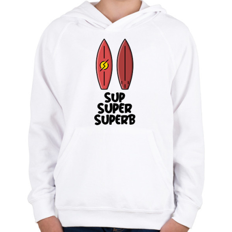 1 kép PRINTFASHION SUP SUPER SUPERB - Gyerek kapucnis pulóver - Fehér