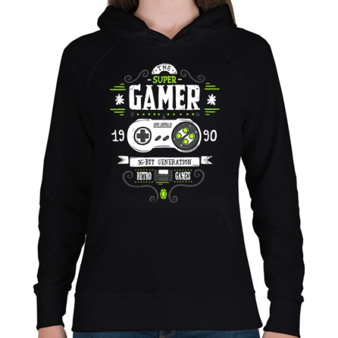1 kép PRINTFASHION Super Retro Gamer - Női kapucnis pulóver - Fekete