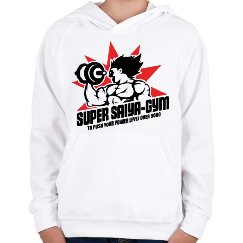 1 kép PRINTFASHION Super Saiyan Gym - Gyerek kapucnis pulóver - Fehér