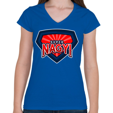 1 kép PRINTFASHION SUPERNAGYI - Női V-nyakú póló - Királykék