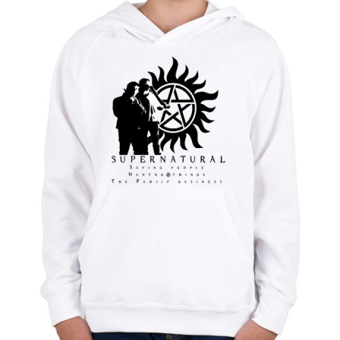 1 kép PRINTFASHION supernatural3 - Gyerek kapucnis pulóver - Fehér