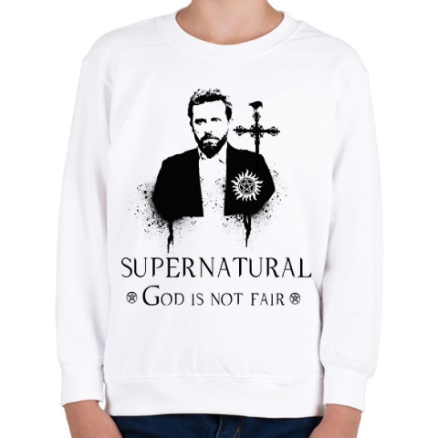 1 kép PRINTFASHION SUPERNATURAL GOD IS NOT FAIR - Gyerek pulóver - Fehér
