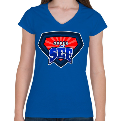 1 kép PRINTFASHION SUPERSÉF - Női V-nyakú póló - Királykék