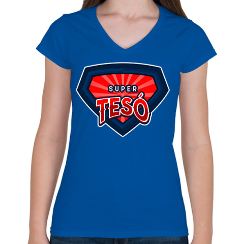1 kép PRINTFASHION SUPERTESO1 - Női V-nyakú póló - Királykék