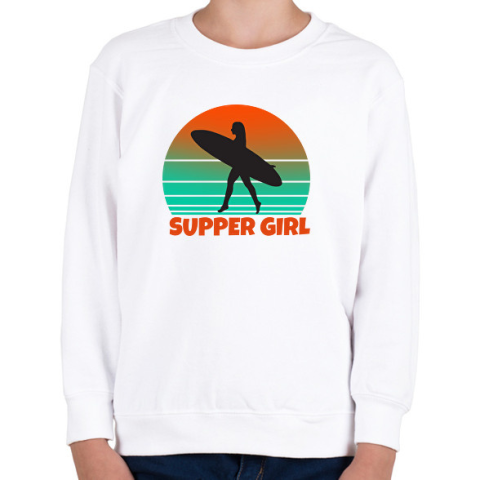 1 kép PRINTFASHION SUPPER GIRL - Gyerek pulóver - Fehér