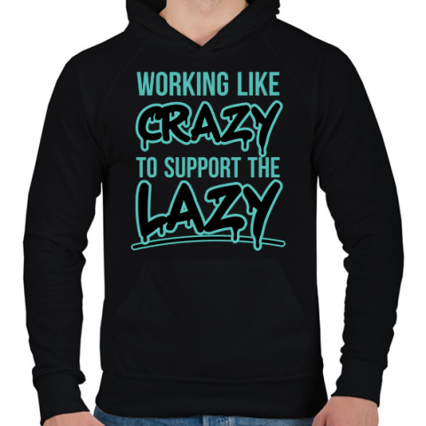 1 kép PRINTFASHION Support the lazy - Férfi kapucnis pulóver - Fekete