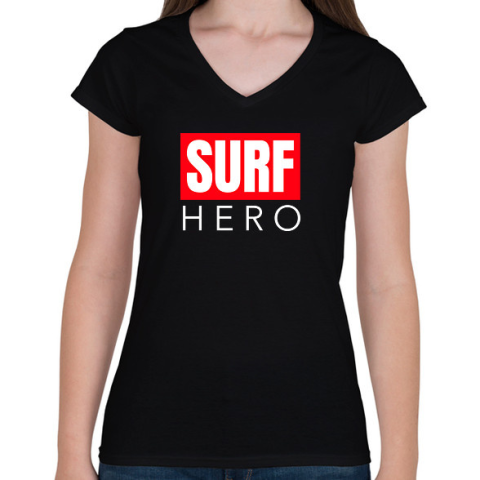 1 kép PRINTFASHION SURF HERO - Női V-nyakú póló - Fekete